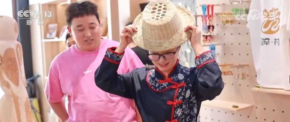 “穿越”第一站,先到“古绫阁”里上道具,等待挑选古代服装的游客把队都排到了店门外。换好服装来到这条主街,就相当于来到了一个“穿越剧场”。游客边走边逛,时不时就能撞见货郎、瓜农、鱼贩、客栈掌柜等多种角色,还有街头艺人表演通天绳绝技,仿佛回到了热闹的古代市集。