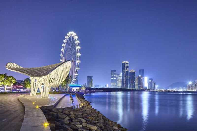 再次,深圳是一座“未来之城”。在这里,你可以看到种种科幻小说的桥段变成现实:无人驾驶观光车、环卫机器人、无人机送餐等等。今年4月,美国顶流网红“甲亢哥”在深圳看到1500架无人机腾空而起,凝聚成一条蓝色巨龙盘旋天际,也不禁赞叹:“Crazy!”更是让无数外国网友感叹:中国科技已站在未来。