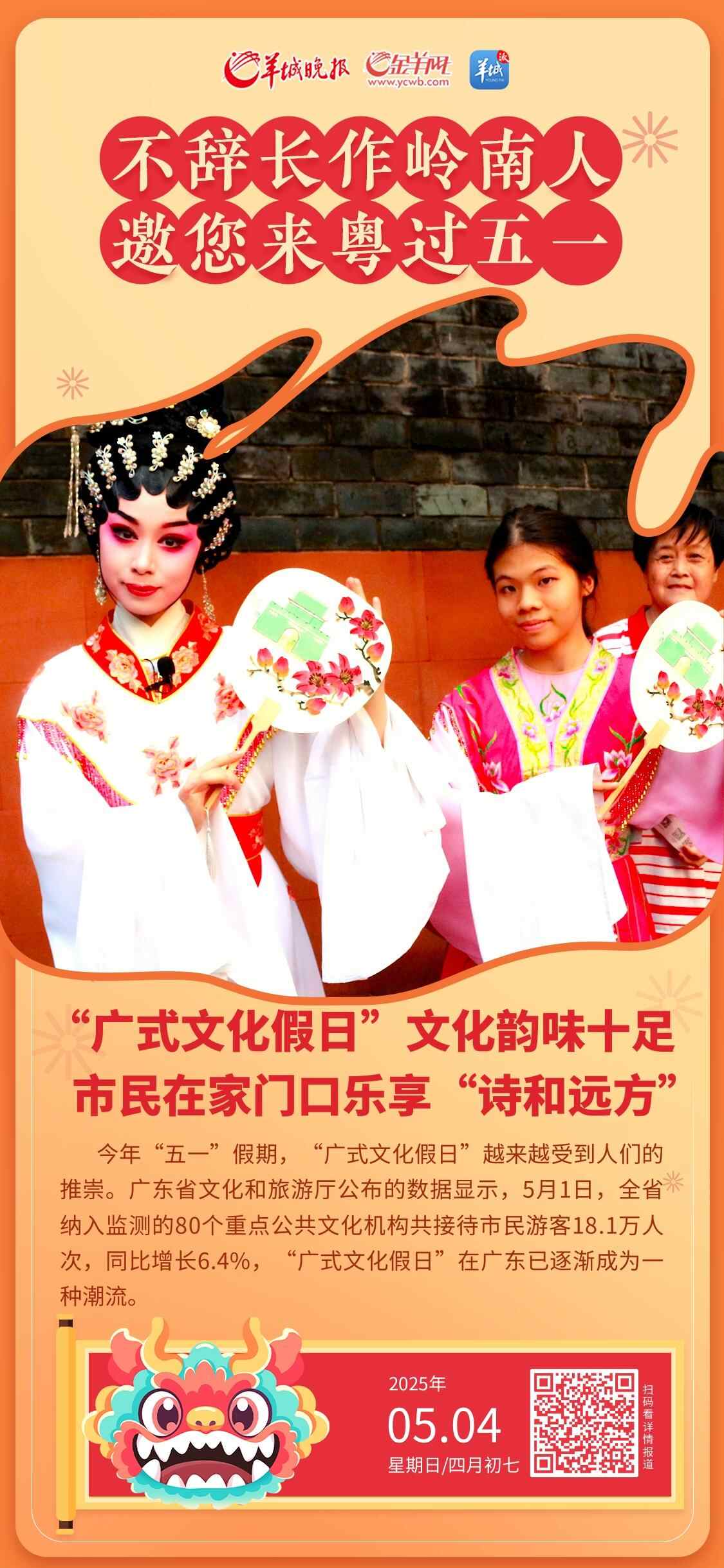 今年“五一”假期,“广式文化假日”越来越受到人们的推崇。广东省文化和旅游厅公布的数据显示,5月1日,全省纳入监测的80个重点公共文化机构共接待市民游客18.1万人次,同比增长6.4%。