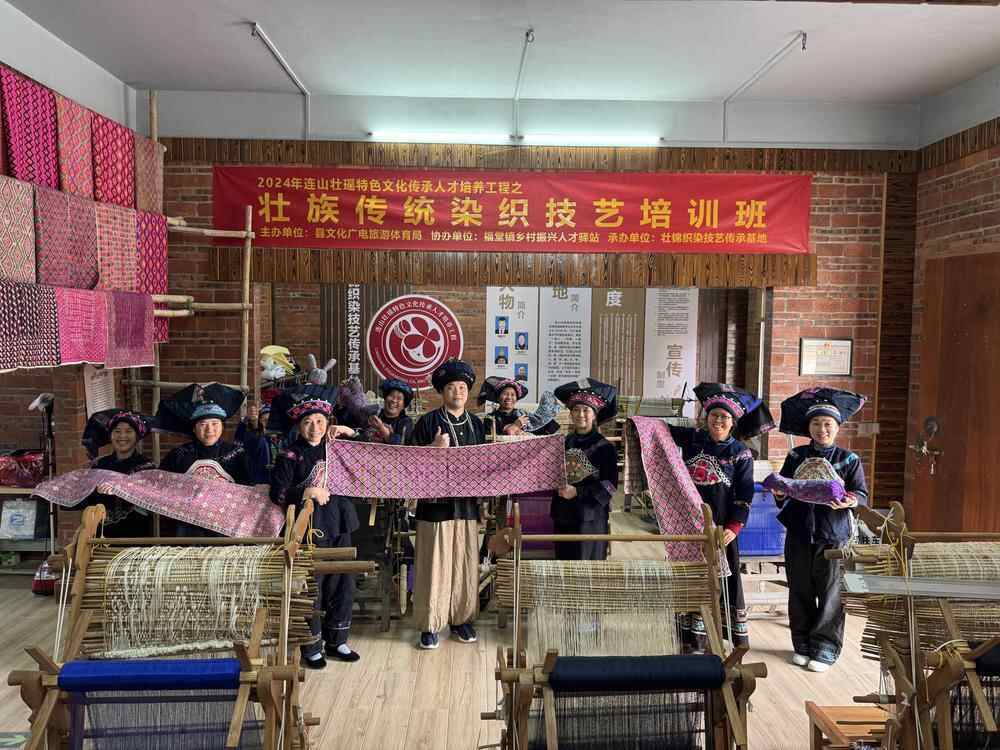 为解决壮锦技艺传承困境,冀麒宇团队开设“壮锦织造技艺培训班”,对贫困家庭留守妇女进行工艺和知识培训,通过“送培在家,就业在家”助力当地贫困村民增收致富。目前,连山壮瑶风采锦绣专业合作社帮扶带动900多人就业,学员普遍一年增收5万多元。村民们在创新模式下就业更灵活,既能照顾家庭又不耽误务农,既实现了家门口就业又实现了家庭增收。