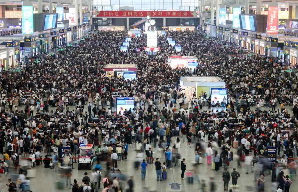 5月1日,旅客在上海虹桥火车站候车。新华社记者 王翔 摄