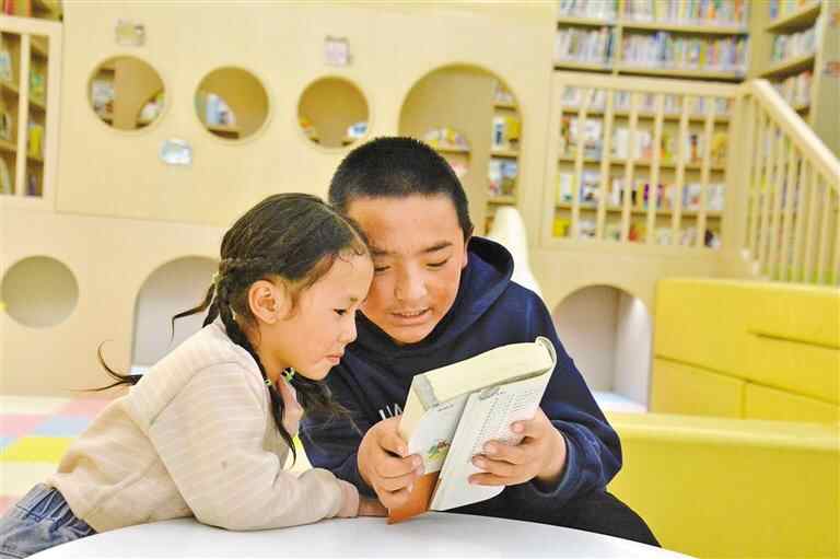 小朋友在那曲市色尼区南部新城的“温暖嘉·色尼城市书房”阅读。记者 汪纯 摄