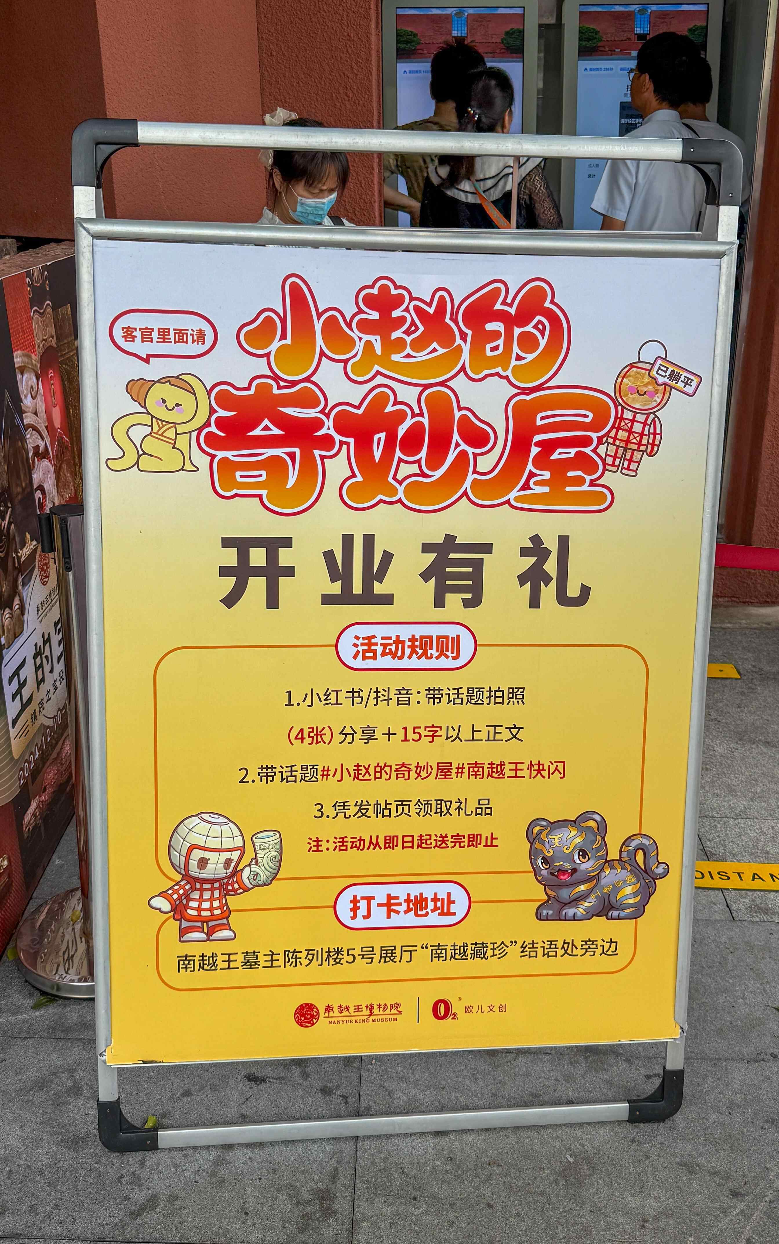 记者从南越王博物院获悉,该院近年来持续丰富王墓展区的文旅价值。今年“五一”至8月20日,南越王博物院将在王墓展区举办“王子、质子、国王:南越明王和他的时代”展览,将通过160余件汉代文物展示“南越五主”之一的南越明王。为了吸引游客特别是年轻人到访,南越王博物院在王墓展区设置了“小赵的奇妙屋”文创商店,出售各类文创产品;并采取“发帖有奖”的方式,请到访网友在小红书、抖音等社交媒体发布“#小赵的奇妙屋”“南越王快闪”等话题帖,网友发帖后还可凭发帖页领取礼品。通过上述方式,到访的游客既可以收获礼物,南越王博物院的曝光度也能在社交媒体获得提升。