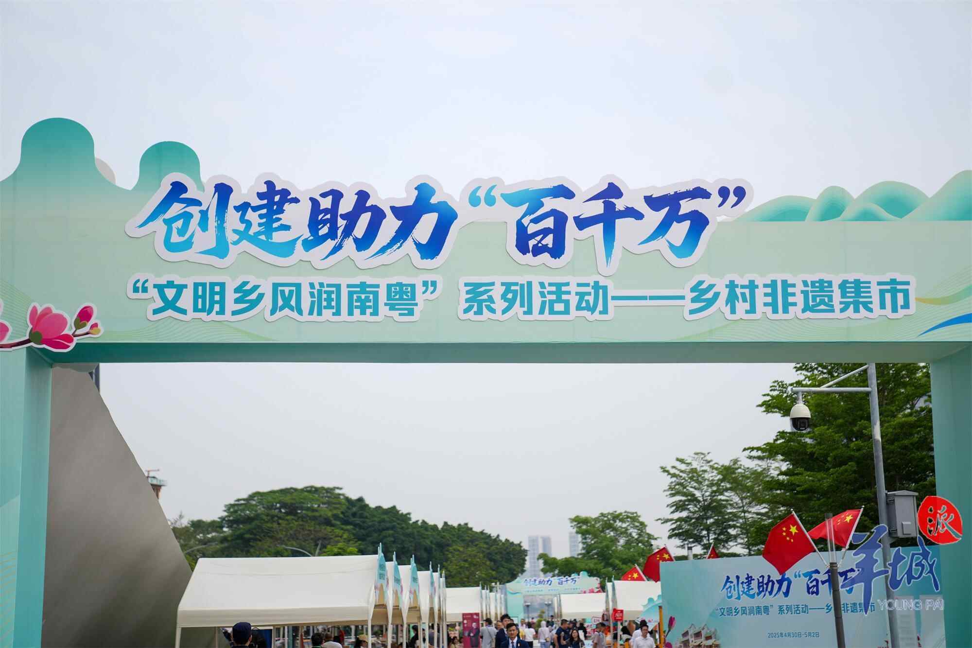 4月30日,由广东省精神文明建设办公室、广东省文化和旅游厅主办,广东省非物质文化遗产馆承办的“创建助力‘百千万’‘文明乡风润南粤’”系列活动——乡村非遗集市吸引了众多市民游客前来“赶集”。50个特色摊位、近百位非遗传承人齐聚一堂,用美食、技艺和潮玩,编织出一幅传统与现代交融的岭南文化画卷。