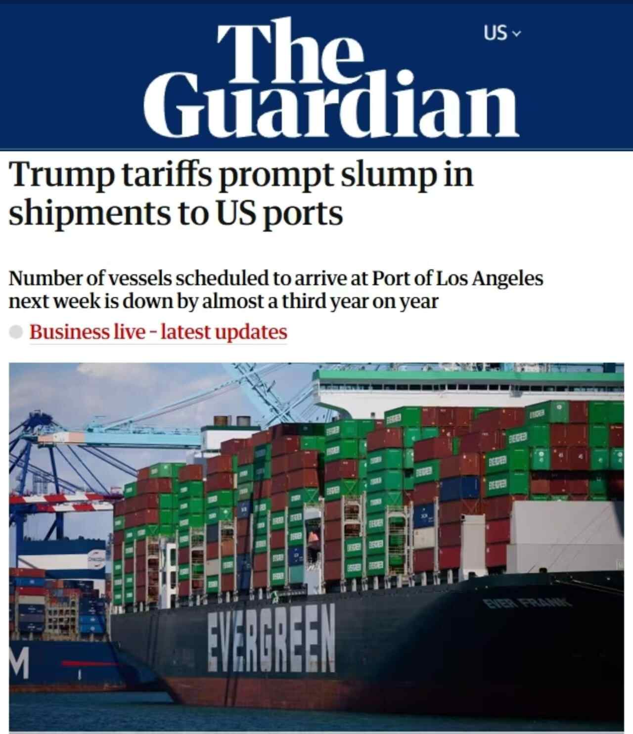 英国《卫报》网站近日刊文指出,美国加征关税导致美国港口出货量暴跌。