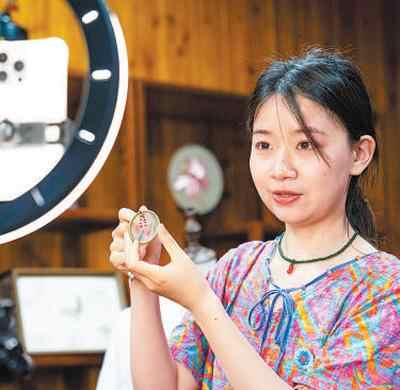 桃源刺绣非物质文化遗产代表性传承人肖瑶在直播。