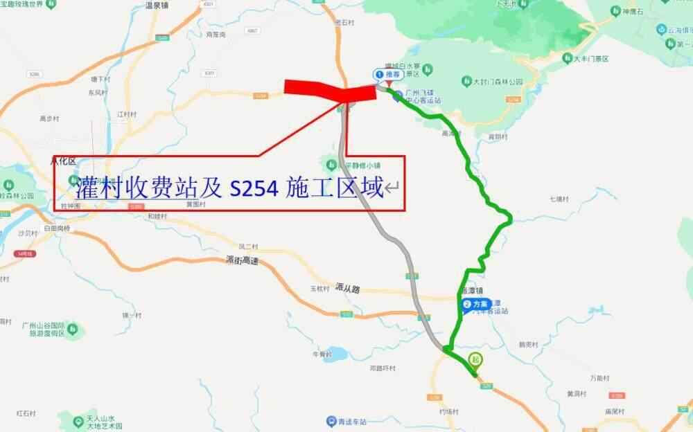 4月30日,羊城晚报全媒体记者从增城区交通运输局获悉,省道S254线从化区段扩建工程(灌村墟至增城界)正在施工,为避免大规模交通拥堵,从化区决定在“五一”假期(2025年5月1日至2025年5月5日)对从莞高速灌村收费站实施交通引导,同时对S254线(石坑村委至增城界)施工路段封闭一车道,采取单车道双向通行。