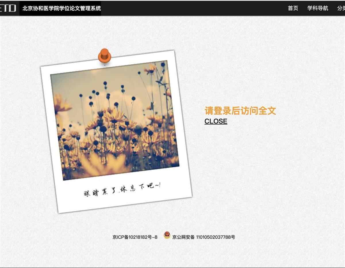 有网友称,董袭莹毕业论文字数难以达到协和医学院博士生的要求。4月29日,知网已无法查询董袭莹毕业论文,但在协和医学院学位论文管理系统中,仍可检索到论文部分内容。论文目录显示,该论文包含“致谢”和“独创性声明”部分共61页,除去文献综述部分,论文正文页数在30页左右。截至发稿前,访客已无法在协和医学院的论文管理系统中查看论文。