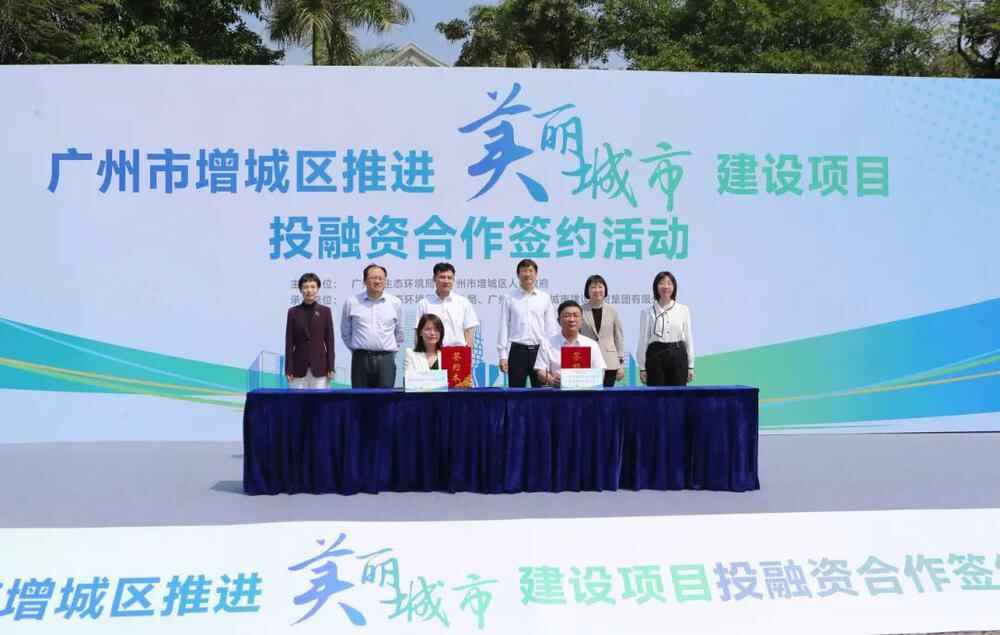 4月29日,广州增城区推进美丽城市建设项目投融资合作签约活动在初溪休闲公园广场举行。国家、省、市、区有关领导及负责人等参加活动。