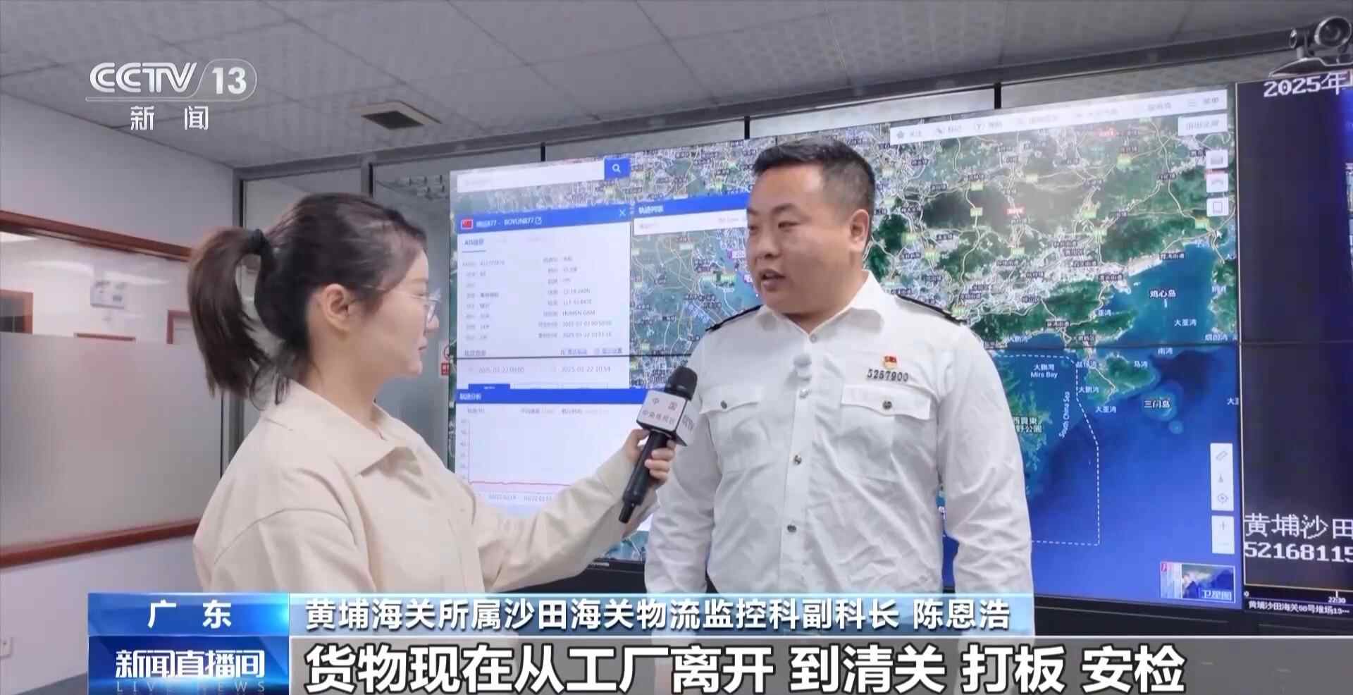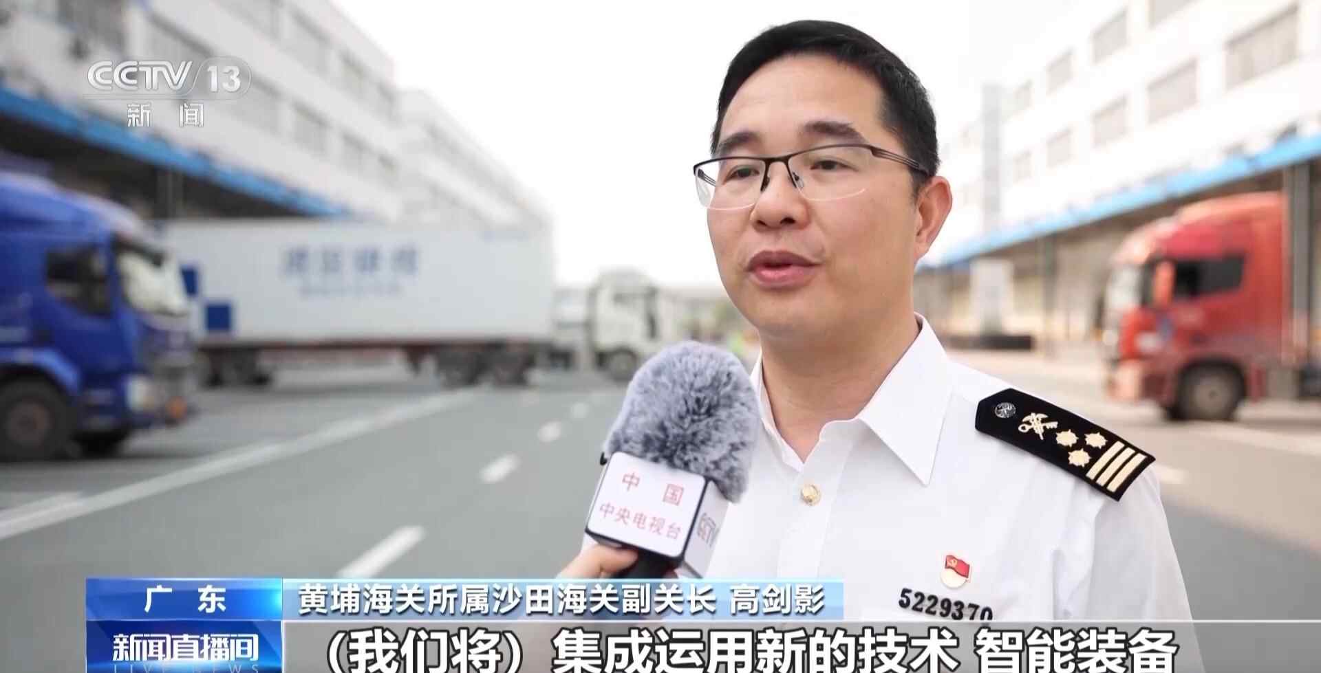 黄埔海关所属沙田海关物流监控科副科长 陈恩浩:货物现在从工厂离开,到清关、打板、安检、装船以及发运整个环节,最快可以在14个小时内完成。我们还在不断优化流程、提高效率,未来预计还可以节约2到3小时。