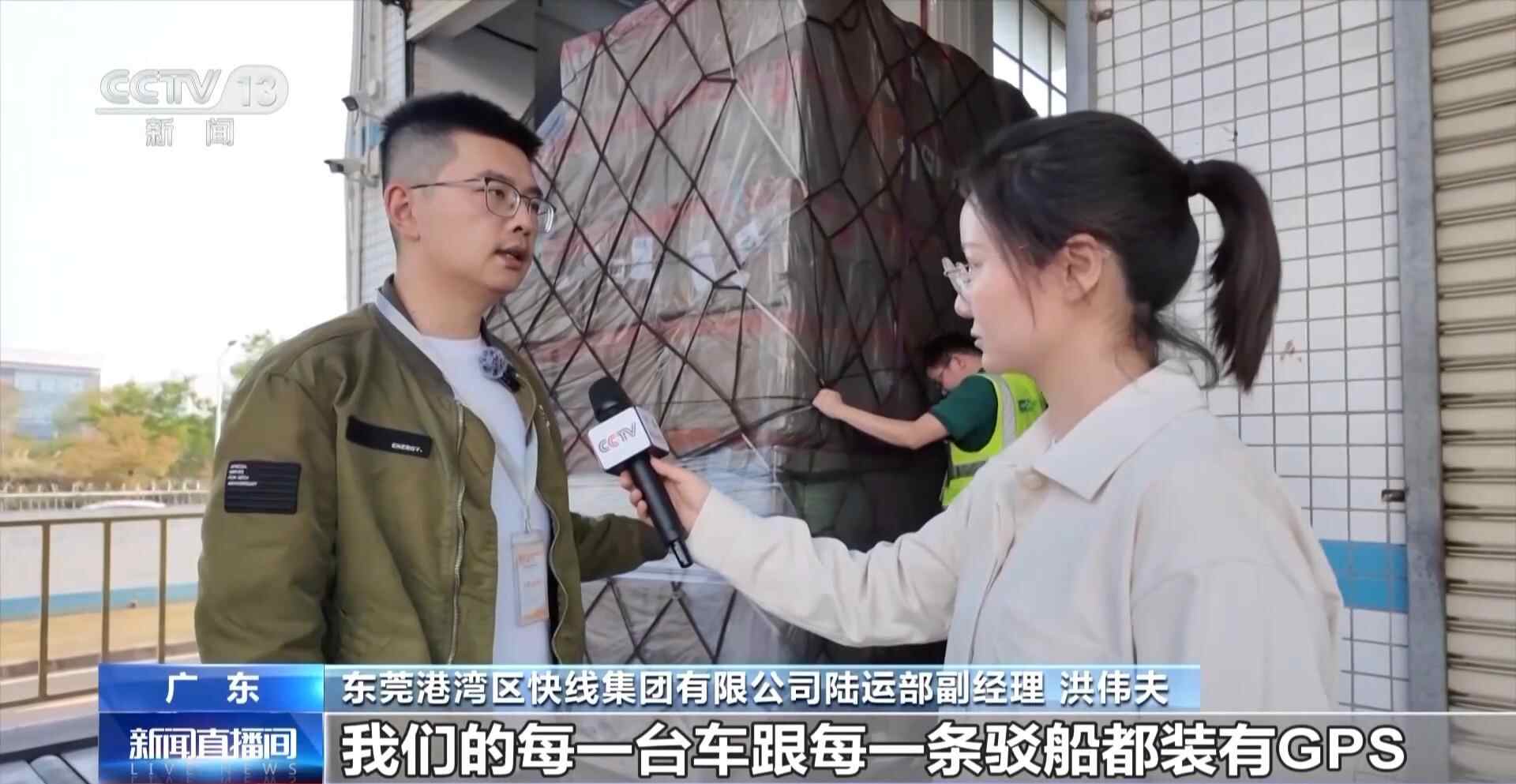 东莞港湾区快线集团有限公司陆运部副经理 洪伟夫:我们的每一台车跟每一条驳船都装有GPS,其中车辆装有电子关锁,驳船的货舱有红外警报,香港海关和内地海关可以在行驶过程中,对这些货物进行远程监管。