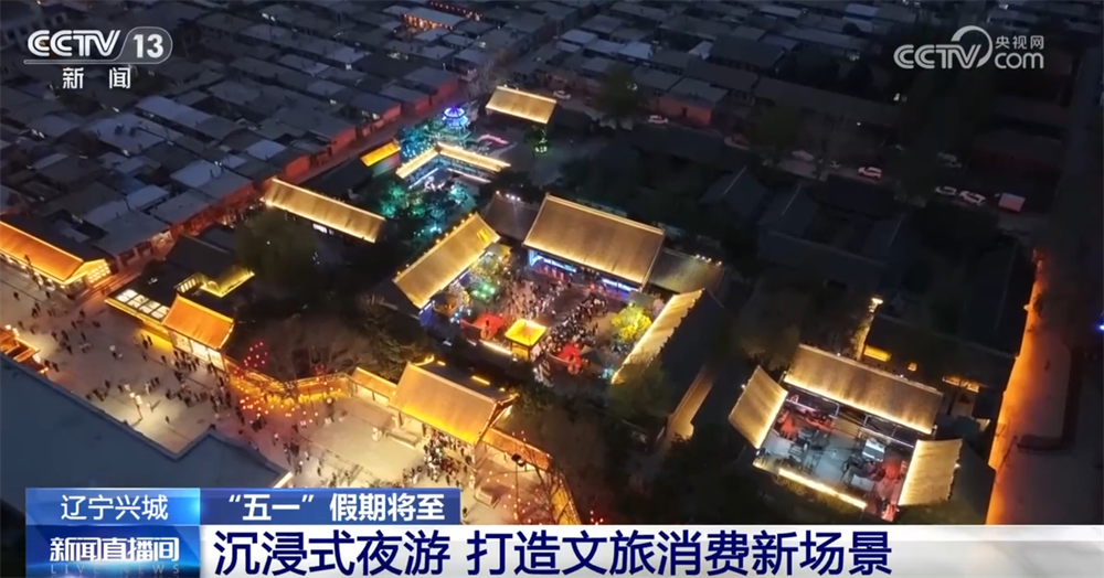 “五一”假期,除了跨境游,国内旅游市场热度也持续攀升,各地文旅市场推出创新消费新场景吸引游客。在辽宁葫芦岛兴城的宁远古城,当地推出了沉浸式夜游演出和主题灯光秀。