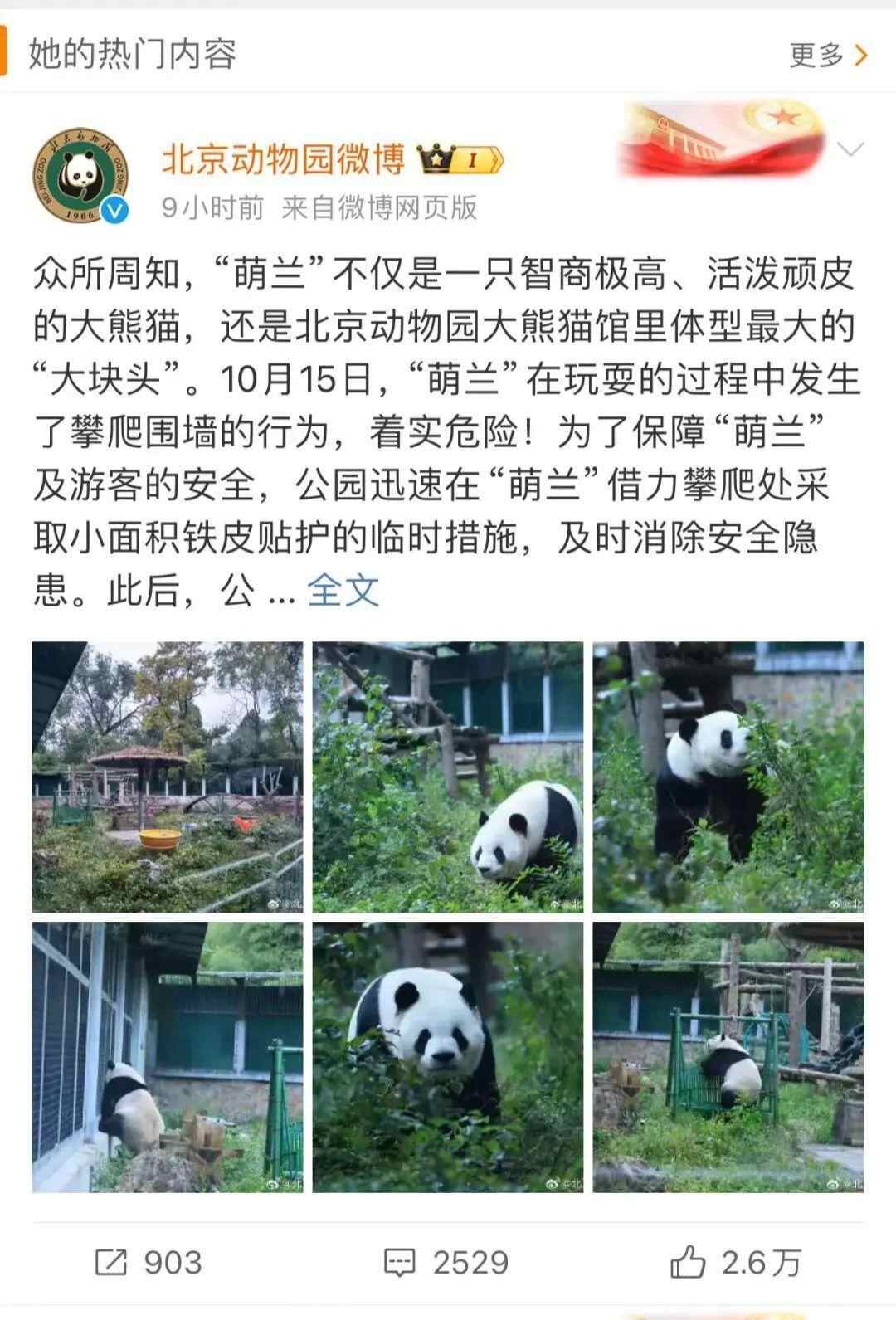 “萌兰”不仅是一只智商极高、活泼顽皮的大熊猫,还是北京动物园大熊猫馆里体型最大的“大块头”,其因热爱攀爬围墙行为引发热议。