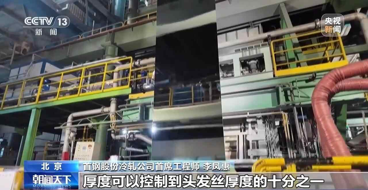 首钢股份冷轧公司首席工程师 李凤惠:锌层厚度均匀性从原来的90%,基本上提高到99.9%,厚度可以控制到头发丝厚度的十分之一。