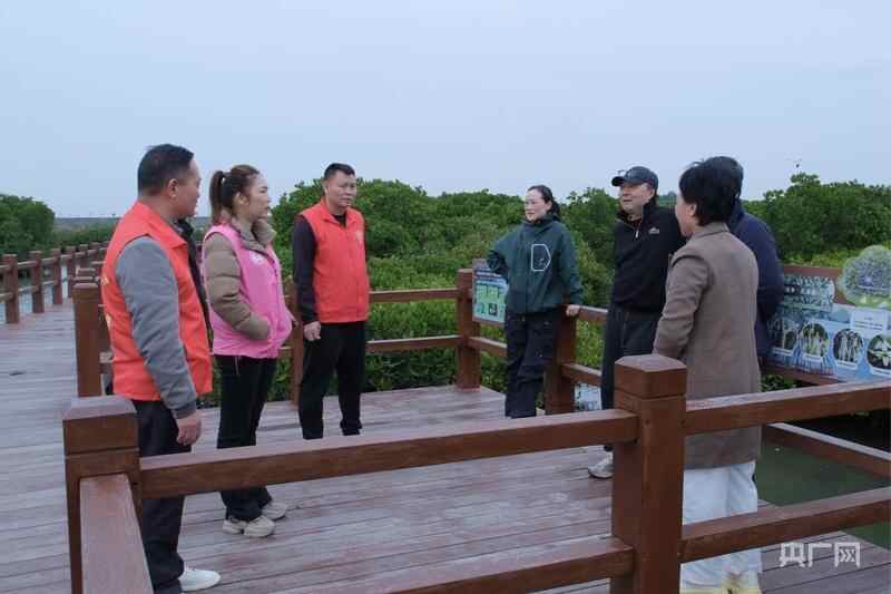世乔村志愿者们向游客介绍红树林知识(央广网记者 官文清 摄)