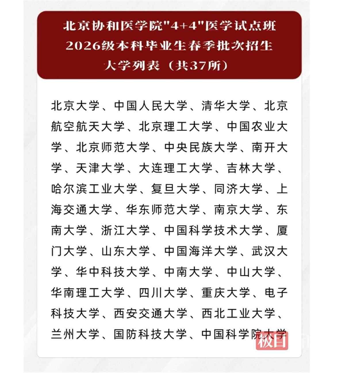 协和“4+4”培养模式在去年11月曾登上过央视报道,该报道称北京协和医学院临床医学试点班的30名学生来自北大、清华、复旦等双一流大学,以及国外约翰斯·霍普金斯大学、华盛顿大学、加州大学伯克利分校等国际排名前50的顶尖学校。