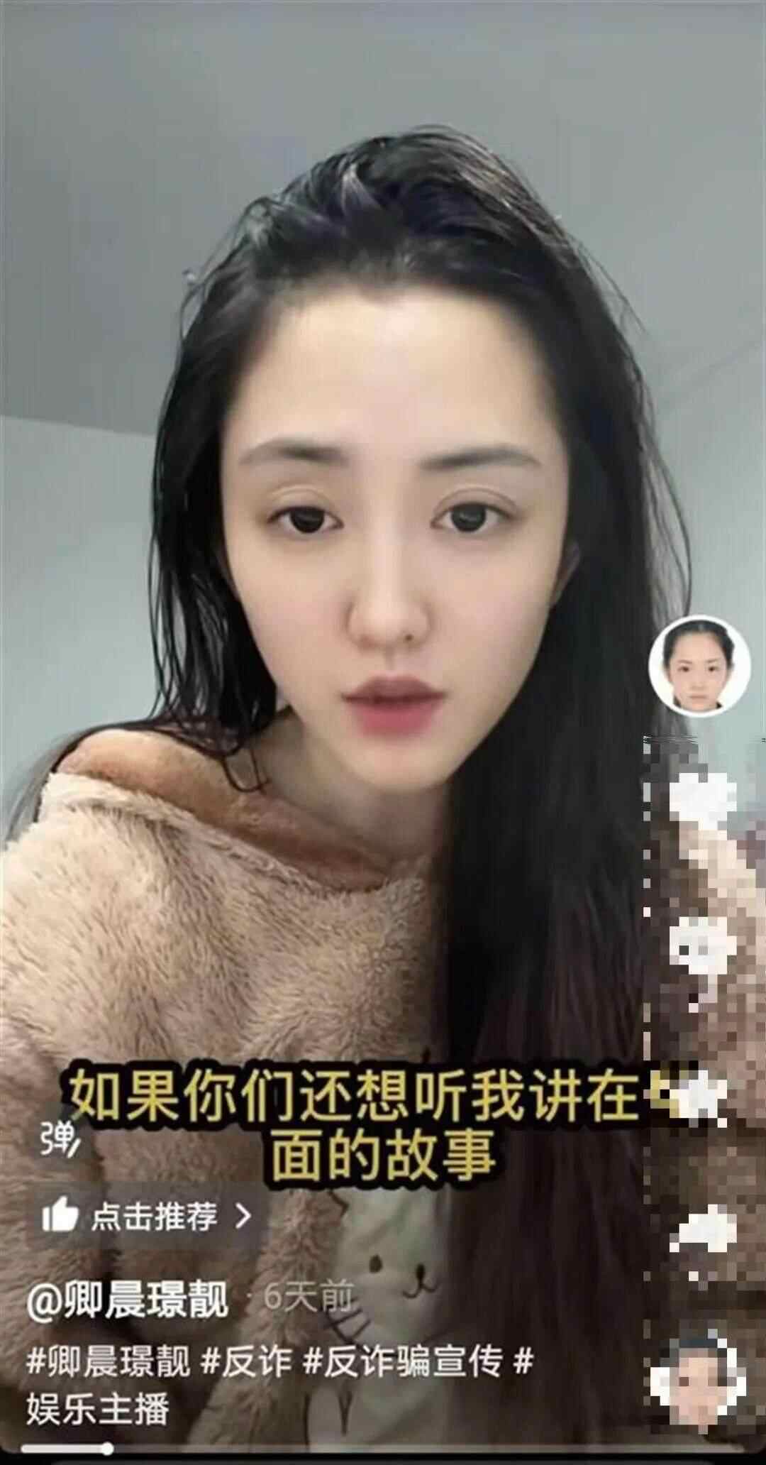 今年3月19日以来,卿晨璟靓在社交平台上,以网络主播的身份共发布多条视频和网友互动,分享“里面的故事”。如“不要问我是不是和xx(服刑的某娱乐明星)关在一起,里面男女是分开的。”“如果你们还想听我讲里面的故事,以及我做托以前那些事,你们就给我卡个灯牌,进我的粉丝群。”