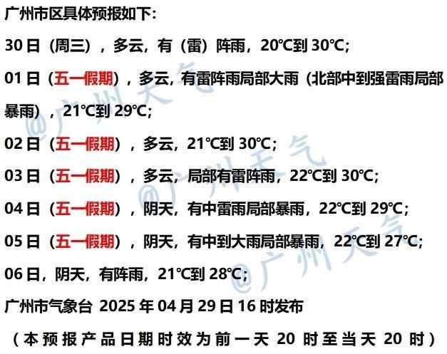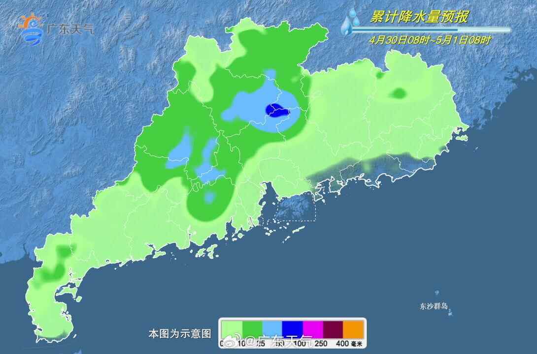 简而言之就是这几个字:首尾两端雷雨频繁。比如今天就有雨雨雨。4月30日白天到5月1日,广东自西向东转有雷雨,局部雨势大。