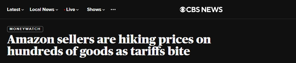 美国哥伦比亚广播公司4月25日报道称,4月第二周以来,美国电商亚马逊平台上的卖家已经上调了近1000种商品的价格,平均涨价幅度接近30%。报道援引价格分析软件工具公司负责人的话报道称,除了关税影响外,没有其他原因可以解释价格上涨。