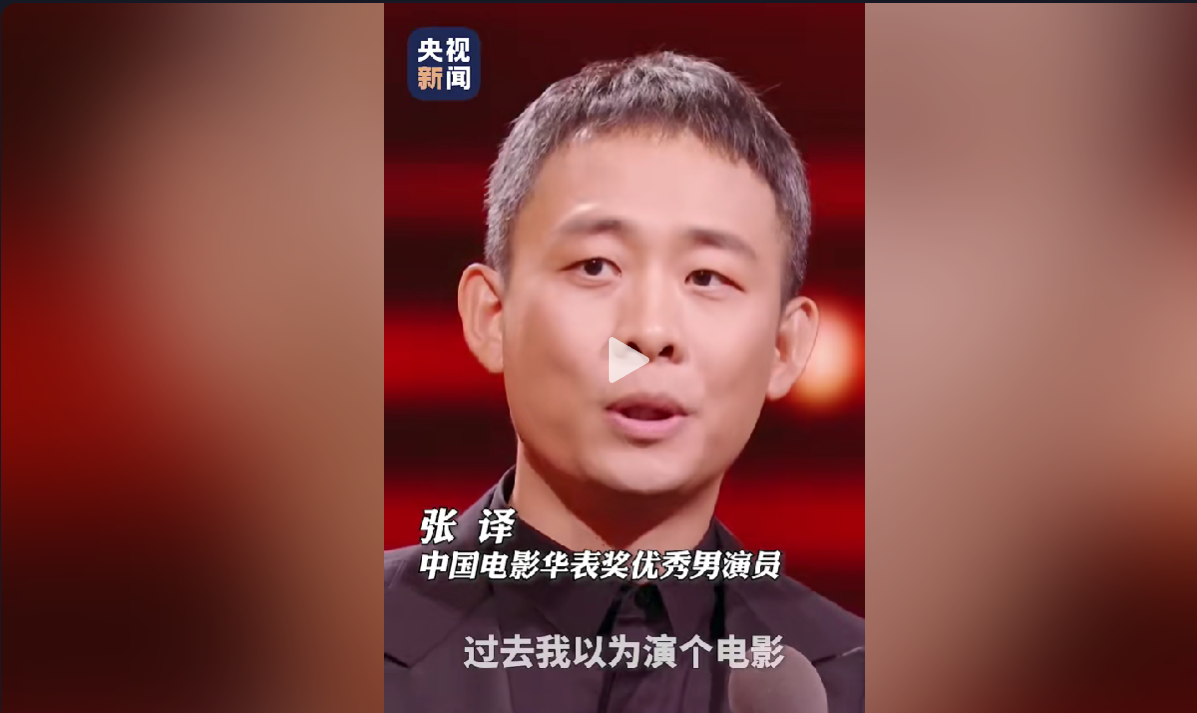 第二十届中国电影华表奖,张译再获优秀男演员奖,发表获奖感言时他说:“中国电影人可以有更大的梦想,把优秀的中国故事、文化自信,传播给世界各地。”
