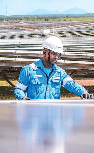 马来西亚吉打州南部,由中企承建并运营的瓜拉基蒂光伏电站上,工人在巡检设备。张纹综摄(新华社发)