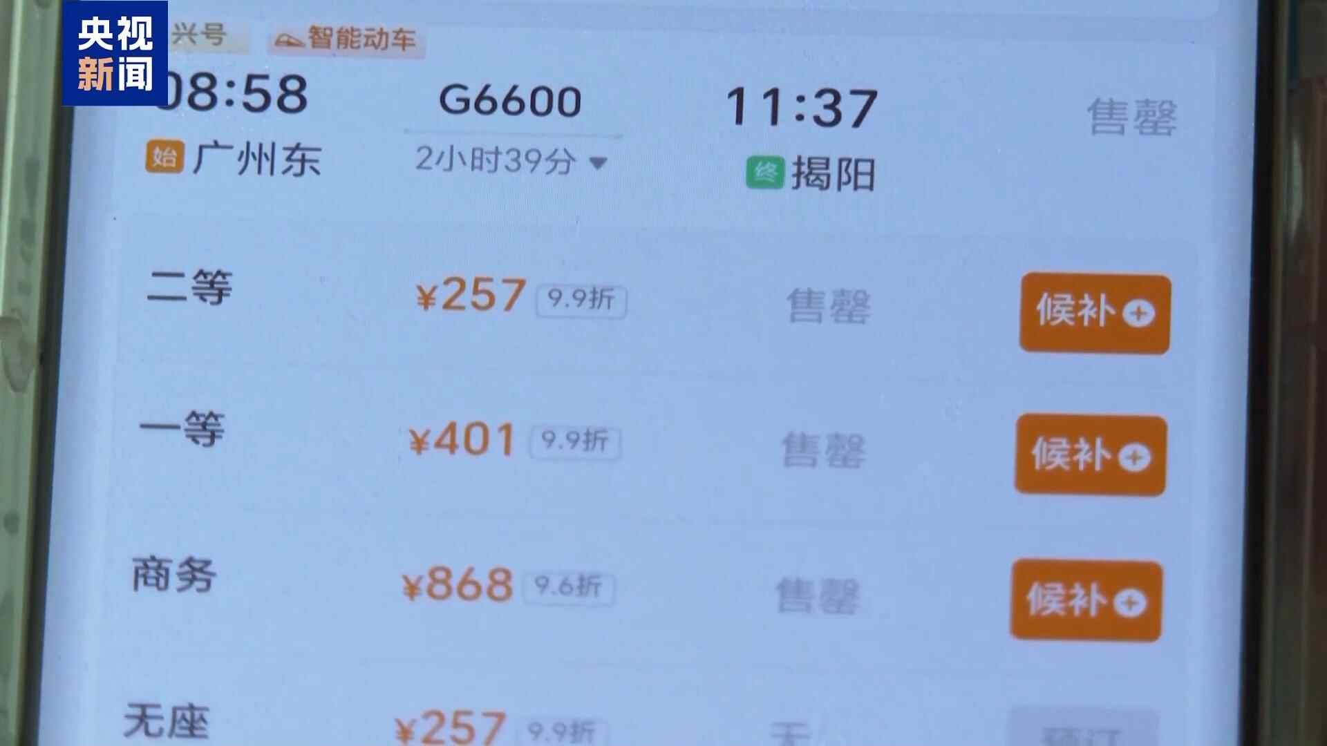 据某旅游网站发布的《五一旅游出行预测报告》显示,今年“五一”假期,旅行热度或达近三年的峰值,出行高峰预计在假期前两日。记者登录12306App,选购5月1日广州开往惠州、潮汕等热门方向的列车,系统显示当日车票已售罄。旅行社提醒,有计划出游的游客应尽早做好准备,对于尚未确定计划的游客,建议考虑5月2日以后选择错峰出行。