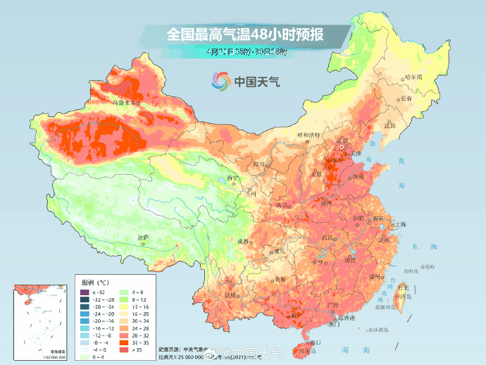 5月伊始,南方各地将组团冲击35℃高温线。从现在到5月初,国内大部地区气温将呈现波动上的趋势,南北方多地气温将创今年来新高,华北平原到江南、华南等地将有大范围的30℃以上的区域。其中5月2日,陕西中部和南部、山西南部、河南、湖北、湖南、贵州、广西北部、福建西部等地的部分地区或有35℃及以上的高温天气出现。