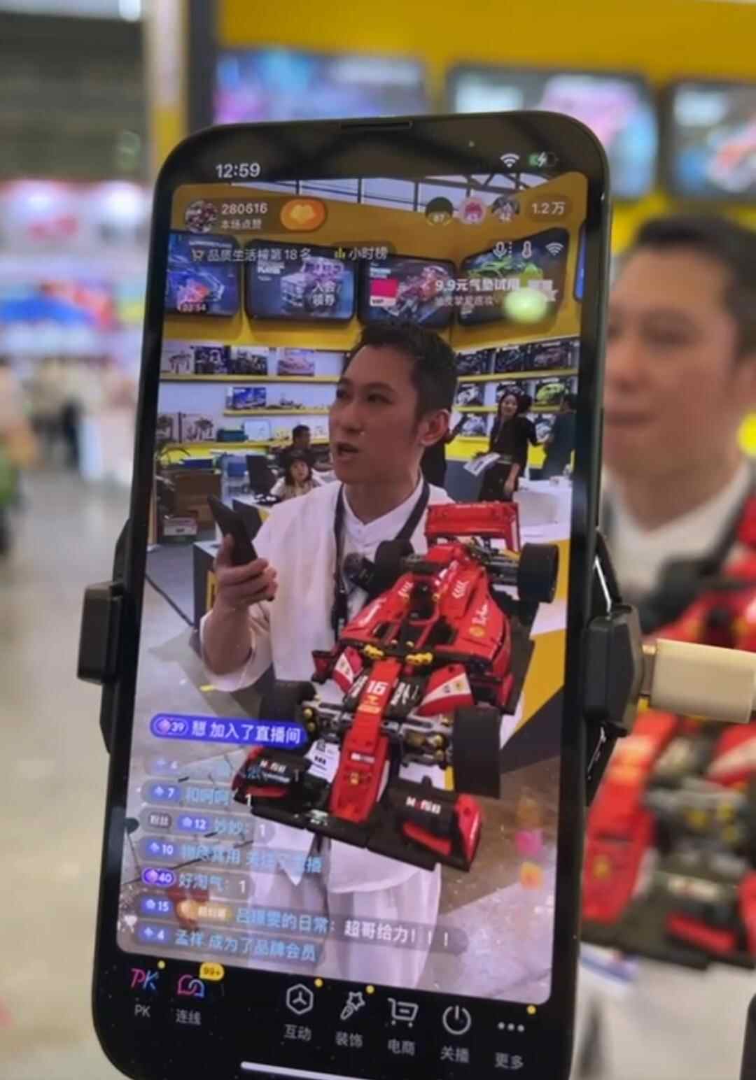 深圳礼品家居展现场的直播间里,超哥又“摇”了一位用户来到现场,在听说对方家里的小朋友都很喜欢拼积木后,他立马送了一套高达给对方。