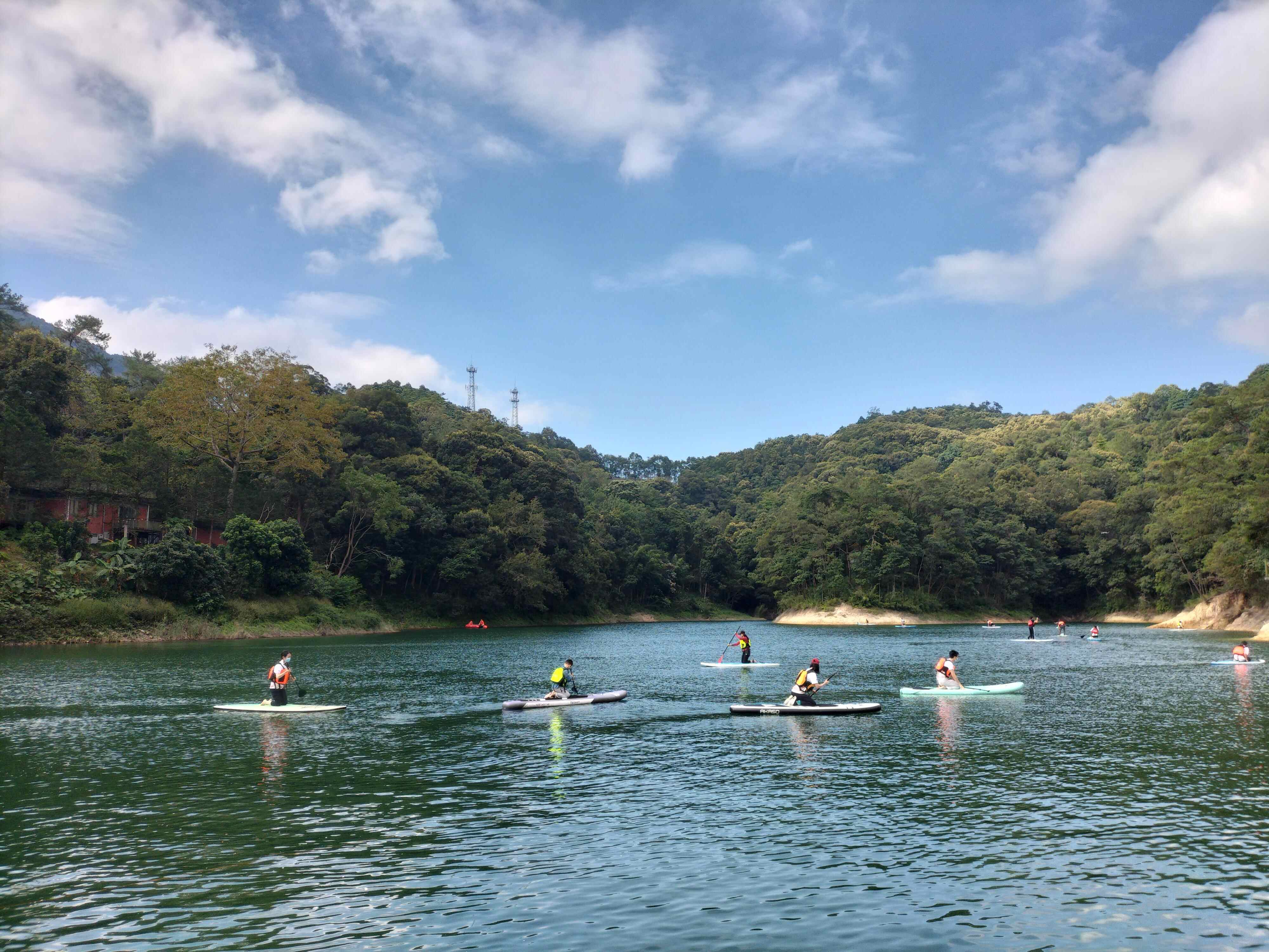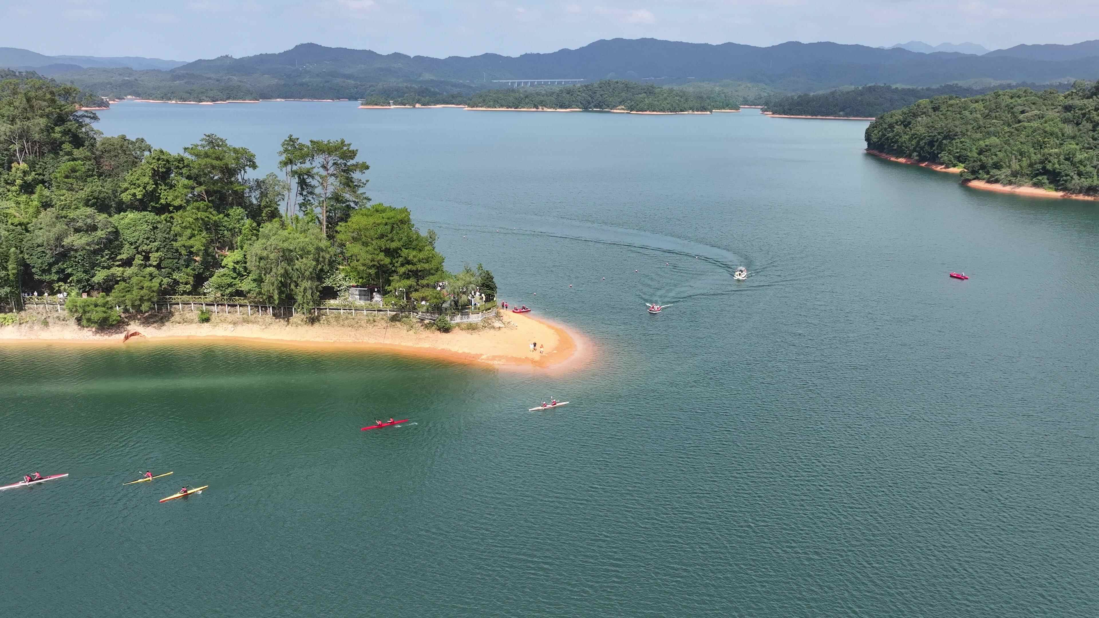 喜欢刺激水上运动的游客,还可以前往一号浮桥参与了皮划艇、水上单车等体验项目,在流溪河水库的碧波上一展风采。