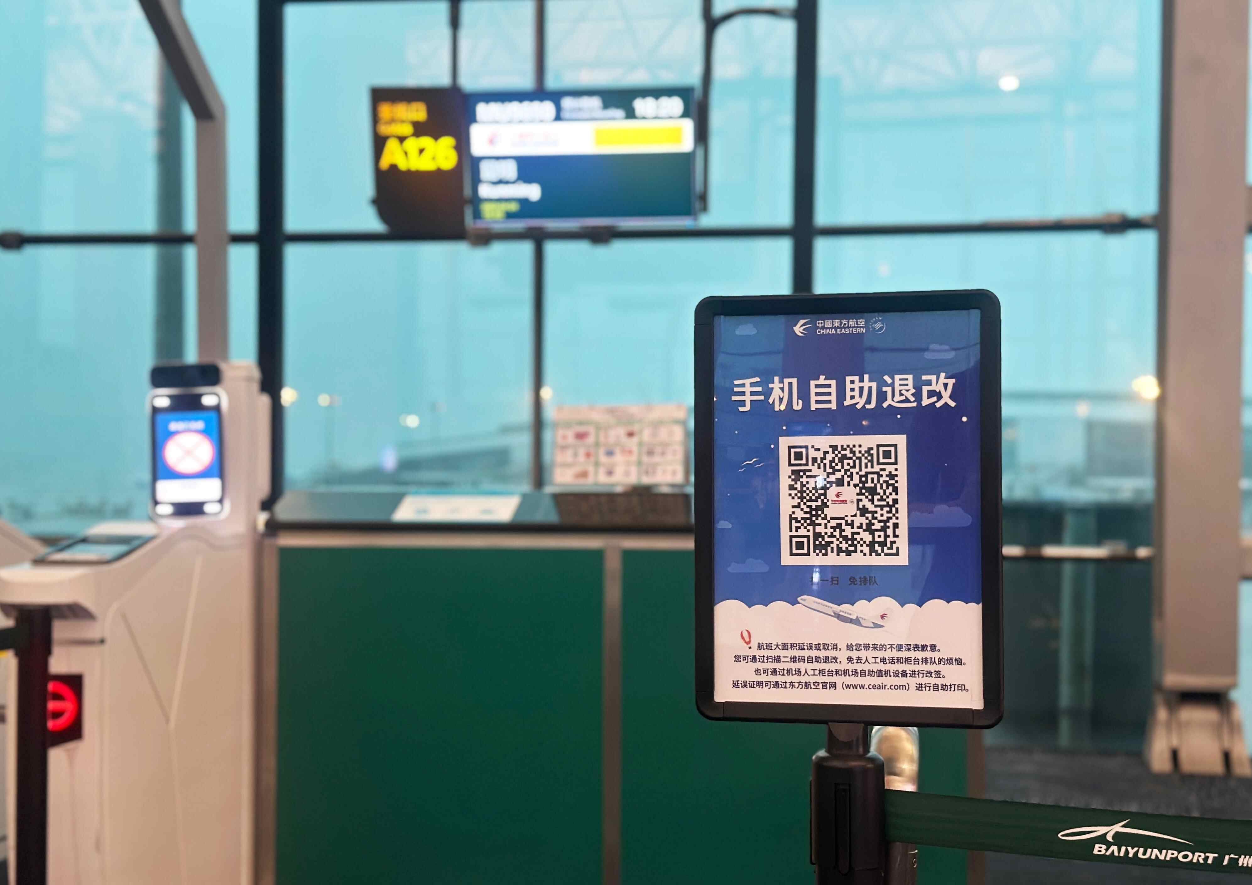 为持续提升旅客出行体验,深化“智慧东航”服务理念,针对旅客最关注的航班延误改签难题,东航于4月28日正式在广州白云、深圳宝安两大枢纽机场上线隔离区国内航班自助改签服务。旅客通过扫描登机口附近二维码,30秒即可完成“证件验证-可选航班查询-电子登机牌更新”全流程操作。