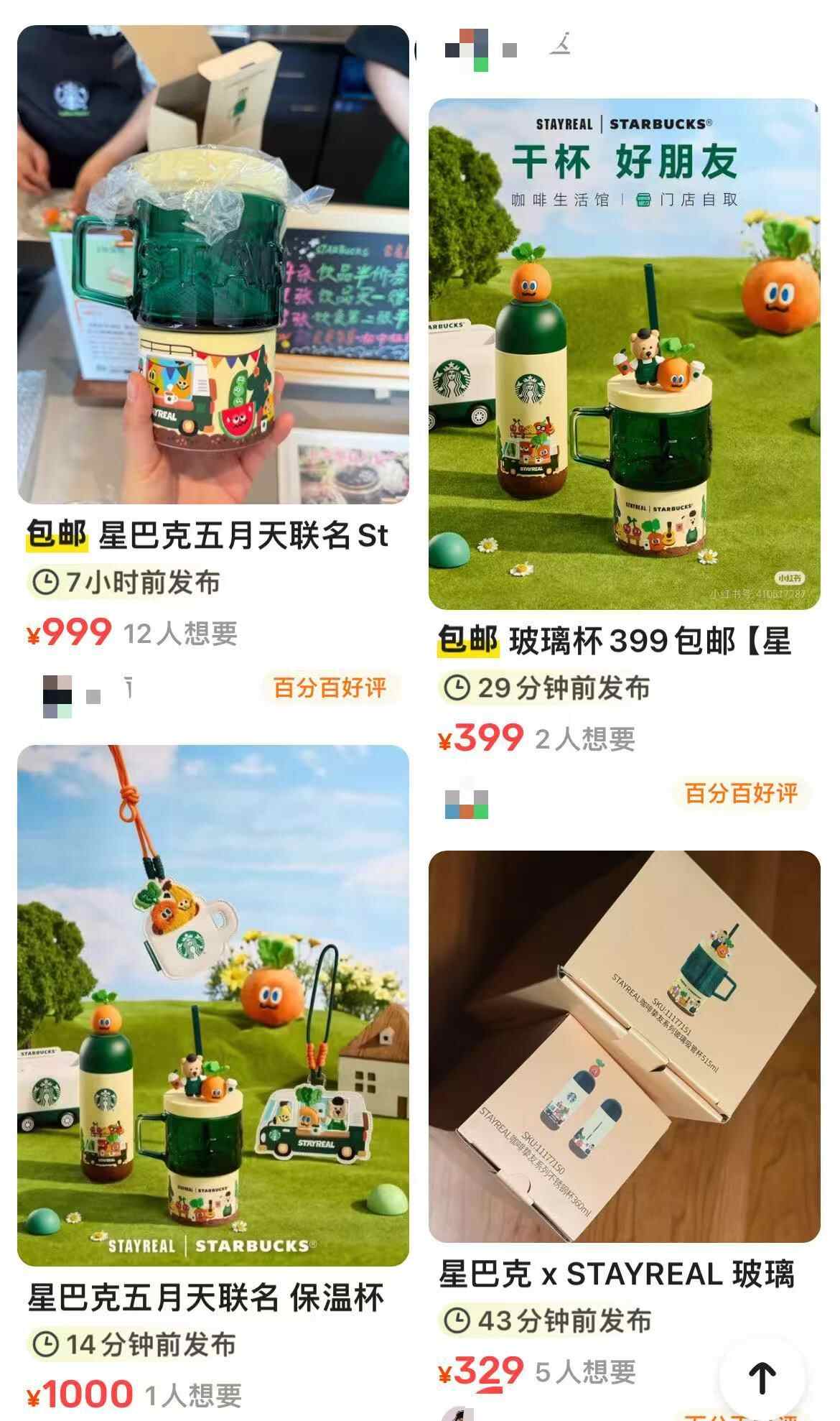 在某二手平台上,原价199元的玻璃吸管杯(515ml)被炒到399元,原价249元的不锈钢杯(360ml)被炒到999元,甚至还有1000元的。