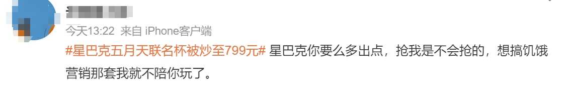 针对本次联名,有网友质疑星巴克饥饿营销,还有人认为存在内部漏洞导致有黄牛提前拿到货源。据九派新闻,28日下午,星巴克官方客服人员回应,针对此次抢购潮,星巴克并没有在饥饿营销。另外,对于是否存在黄牛提前拿到货源的情况,该工作人员称,目前没有核实到。
