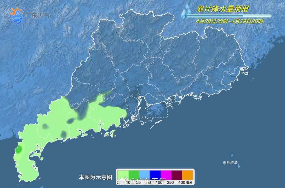 ◆预计4月29日-30日白天,粤西、云浮和肇庆多云间阴天,有分散阵雨,其余市县多云,局部有阵雨。大部市县最高气温将介于29~33℃。