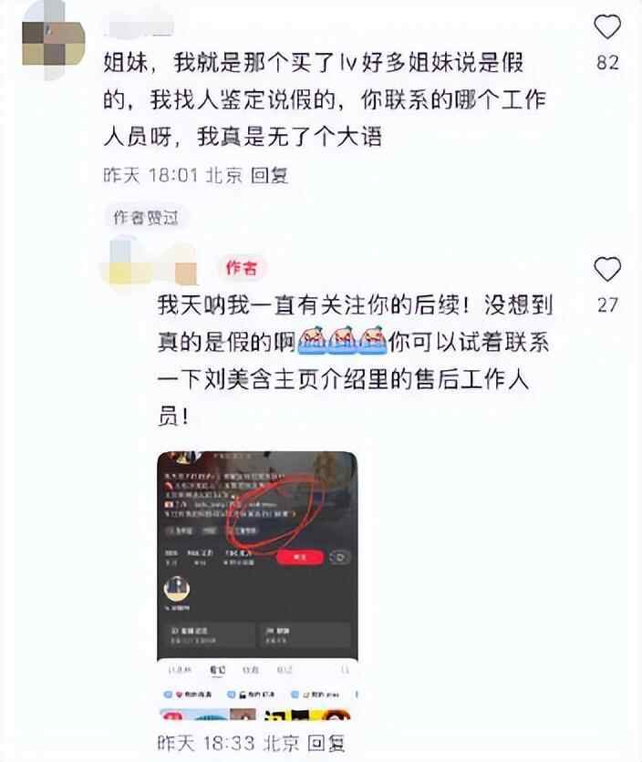 除此之外,还有网友表示自己在刘美含闲置集市买到的LV背包也疑似为仿冒。