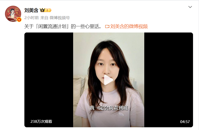 4月28日,“刘美含闲置市集卖假货”登上热搜,对此,演员刘美含发视频回应,称因为前期工作的疏漏,市集上出现了几个有纰漏的产品,已经在跟购买者逐个积极解决中。作为活动的发起人,自己一定会负责到底。