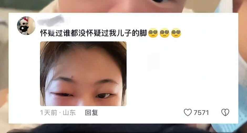 她略带无奈又自嘲地说道:“闻自己四个月宝宝的脚丫,眼睛感染到肿胀睁不开,也没人跟我说小孩的脚有毒啊!”