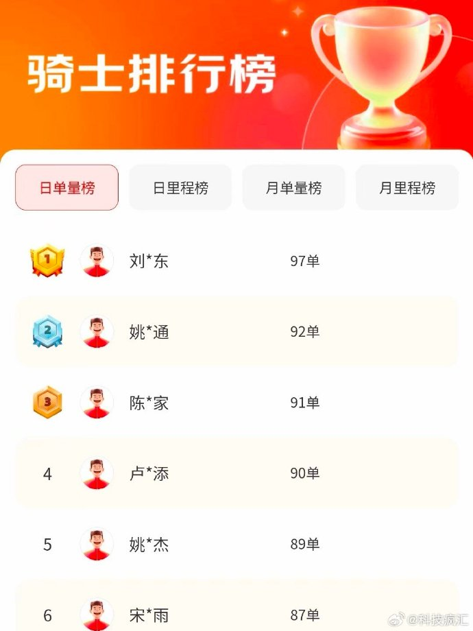 4月22日,网上一张图片显示,刘*东以97单的单量排在京东骑手排行榜“日单量榜”第一名。22日晚,京东方面回复现代快报记者,此为不实信息,榜单排名为虚构。