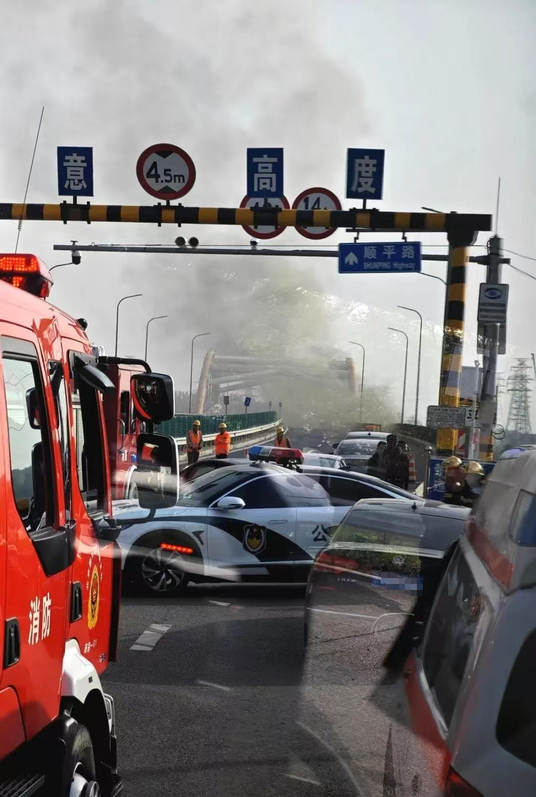 据北京交通通报,4月23日7:07,顺义区潮白河大桥发生火情,部分桥体受损,为保障安全,现场已双向断路。交通、消防、交管等部门和属地政府第一时间赶赴现场,组织开展灭火、交通管制等处置工作,现场未发现人员伤亡。顺平路顺义段潮白河大桥附近(K14+200至K15+100)采取双向断路措施,过往车辆可绕行顺平复线和顺平南线。请广大市民提前规划好出行路线,给您带来不便敬请谅解。
