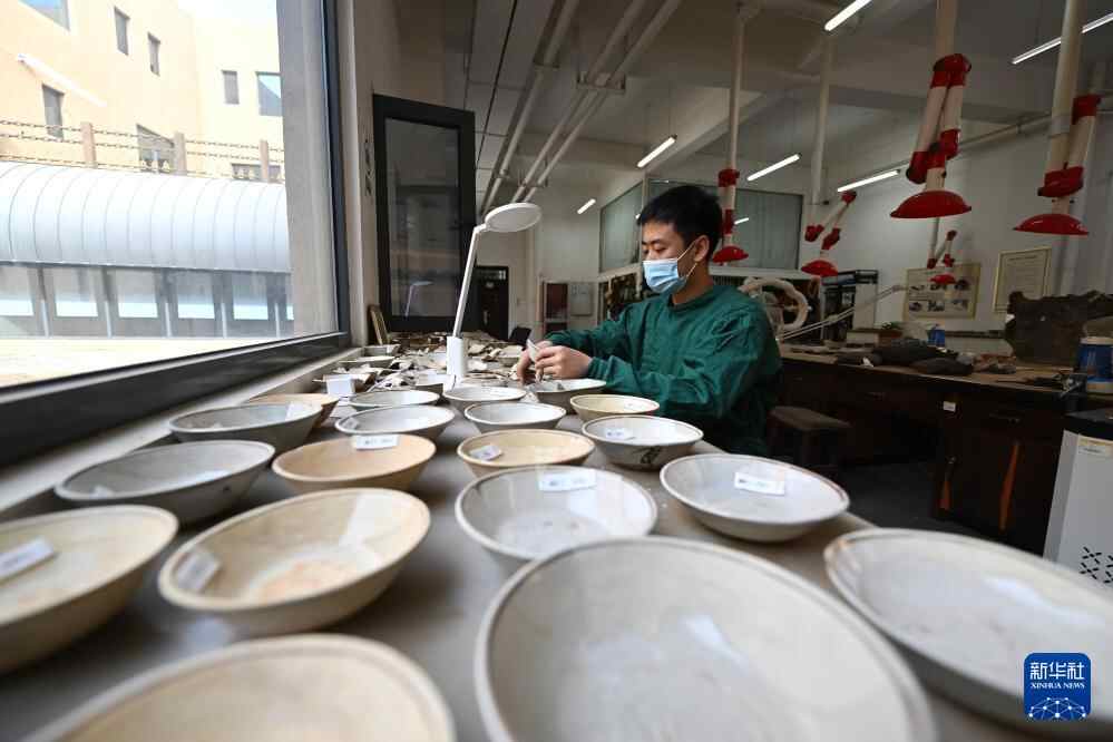 4月15日,在云冈研究院可移动文物修复室,工作人员李鹏飞在进行瓷器修复。