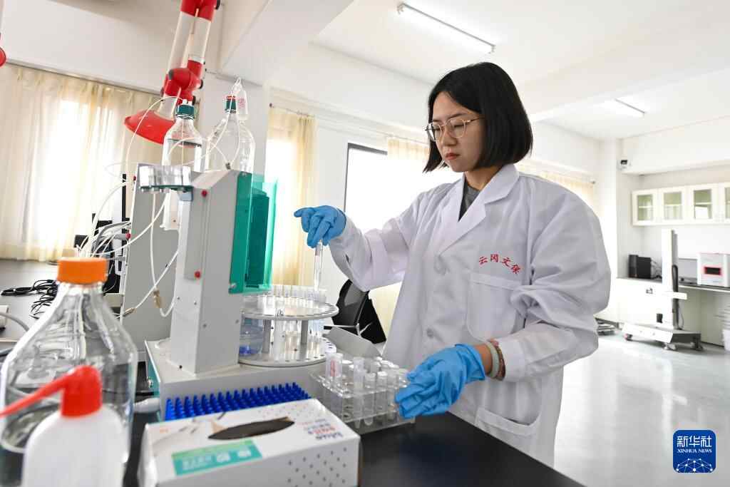 4月16日,在云冈研究院石质文物保护研究室,工作人员张帆在检测分析石窟壁面样本。