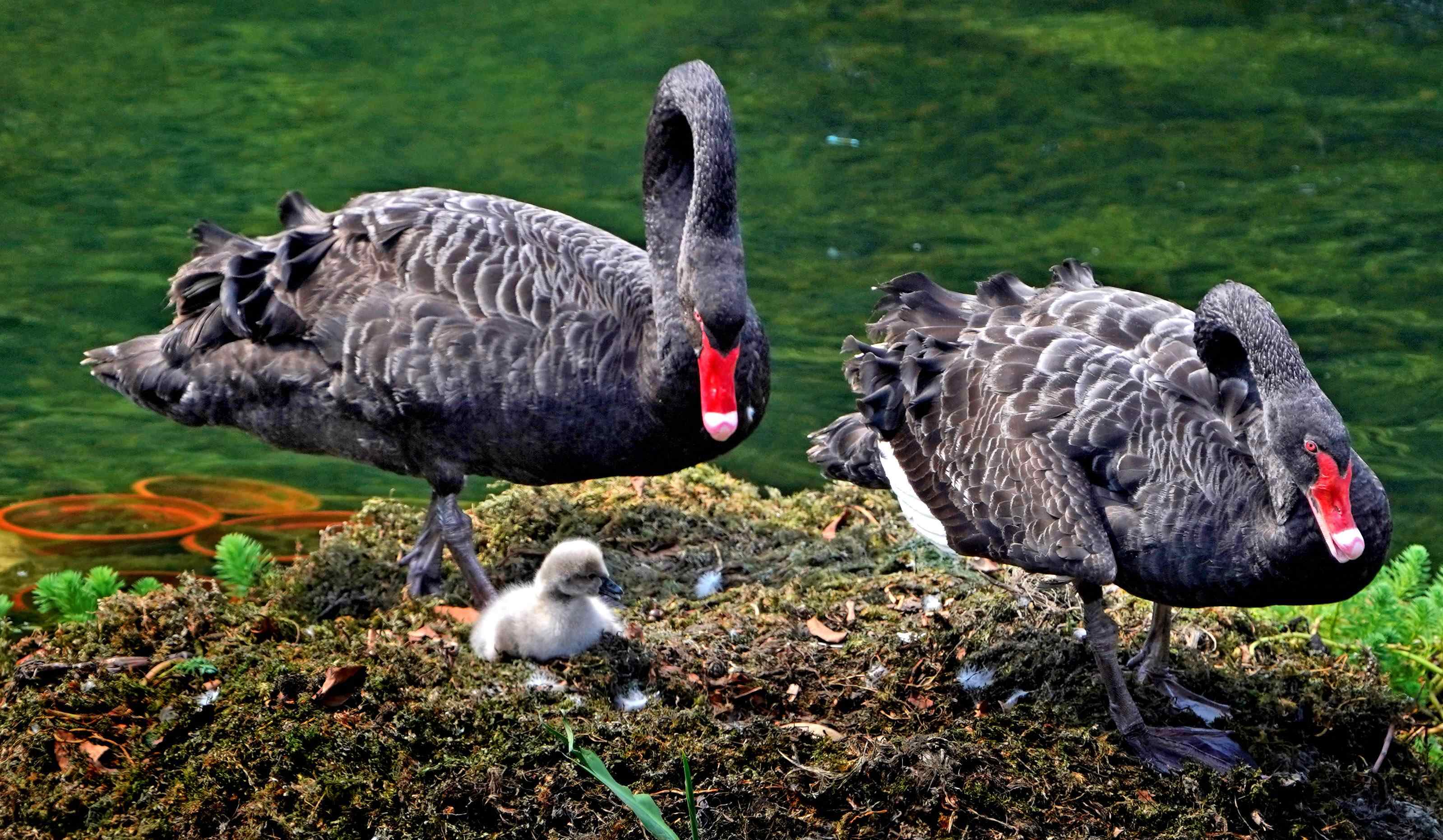 瞧!广州东山湖公园黑天鹅家族“添丁”