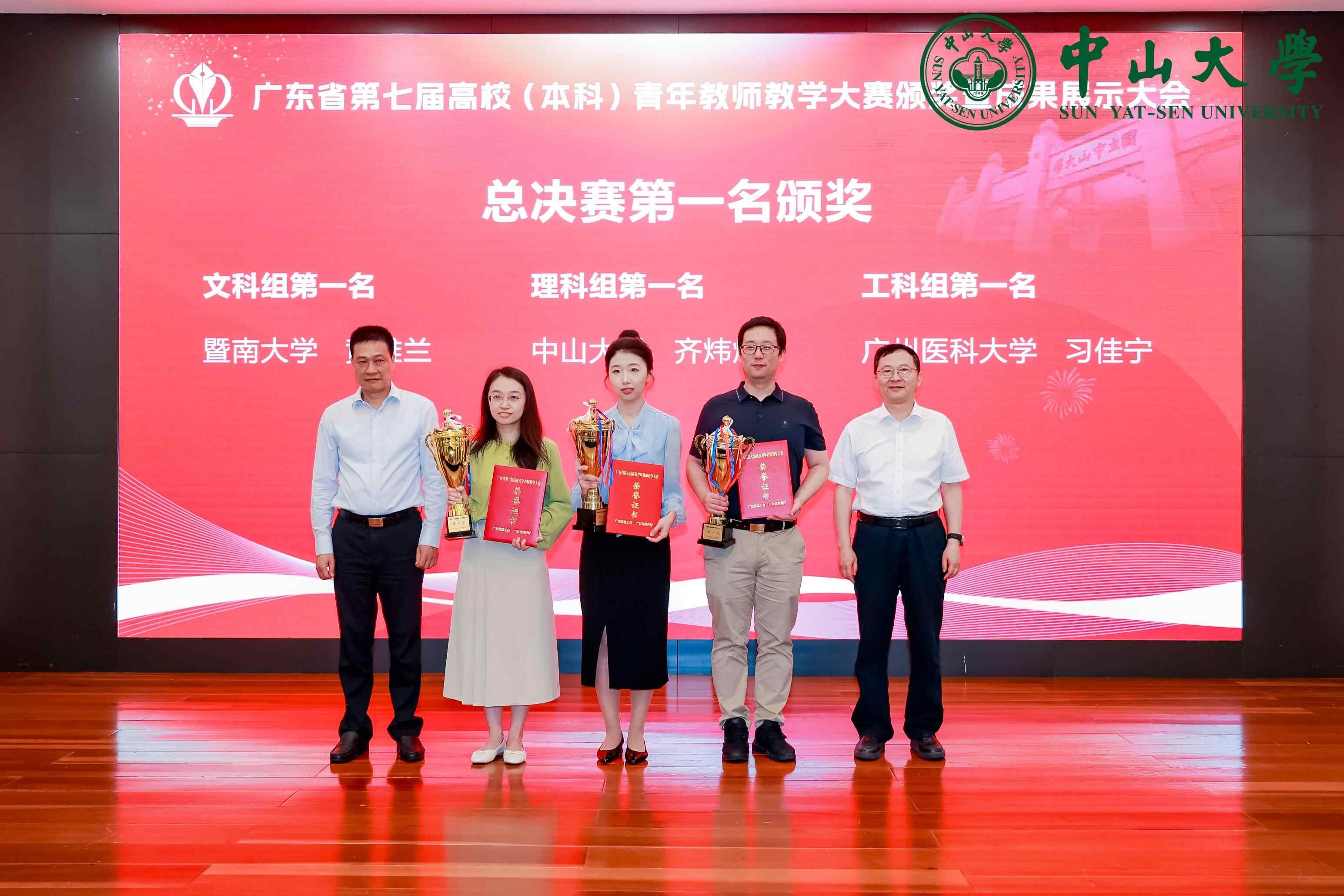 广东省第七届高校青年教师教学大赛决赛按本科院校、高职院校(含本科层次职业学校)两类分开进行。其中,本科院校类分赛是广东推进高校青年教师队伍建设、提升教育教学质量的重要载体,设文科组、理科组、工科组三个组别,并细分为八个比赛组。全省65所本科高校通过校内选拔,共推荐822名优秀青年教师参加本届大赛。经过网络评选,120名优秀教师脱颖而出,进入现场决赛环节。经过激烈角逐,暨南大学黄雅兰、华南农业大学缪燚晶、华南农业大学严慕婷、中山大学齐炜炜、广州医科大学习佳宁分别获得文科、思政课专项、理科、医科、工科小组第一名,将按照全国赛组别设置情况推荐参加第八届全国高校青年教师教学竞赛。其中,黄雅兰、齐炜炜、习佳宁三位老师还分别荣获文科组、理科组、工科组第一名。