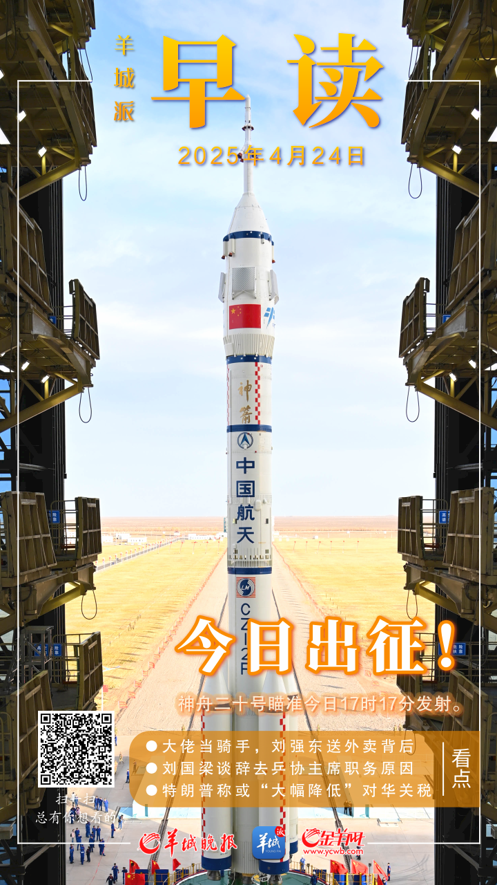 ◆神舟二十号瞄准今日17时17分发射。详情--> 新“出差三人组”亮相!神二十乘组简历来了。详情--> 神舟起落处,人间烟火长——探访东风航天城。详情-->
