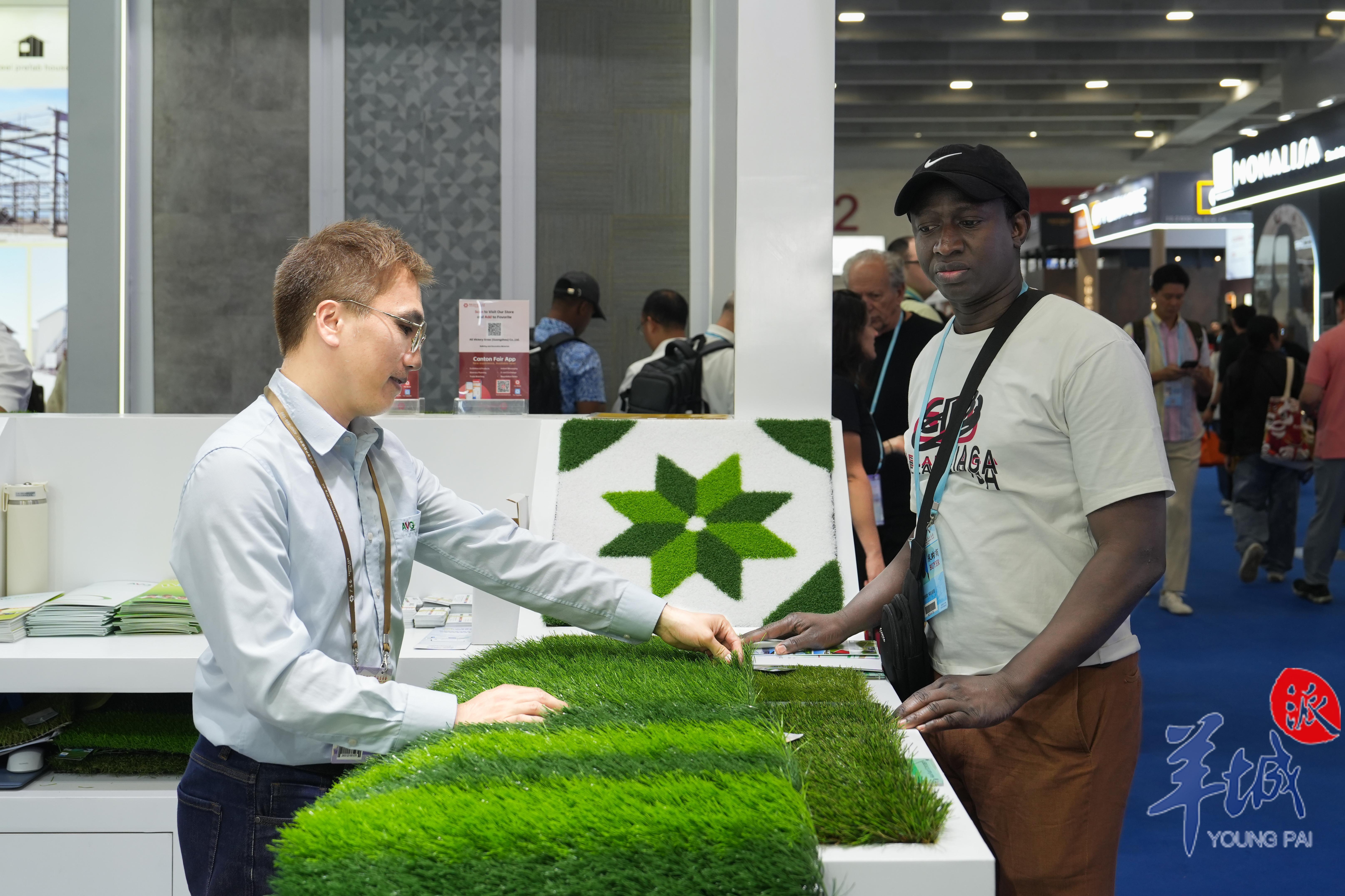 在13.2展馆傲胜股份展位,一卷卷“会呼吸的草坪”吸引着南美采购商驻足。这家服务过北京“双奥”、杭州亚运会的企业,正将其顶尖技术注入十五运会赛场。
