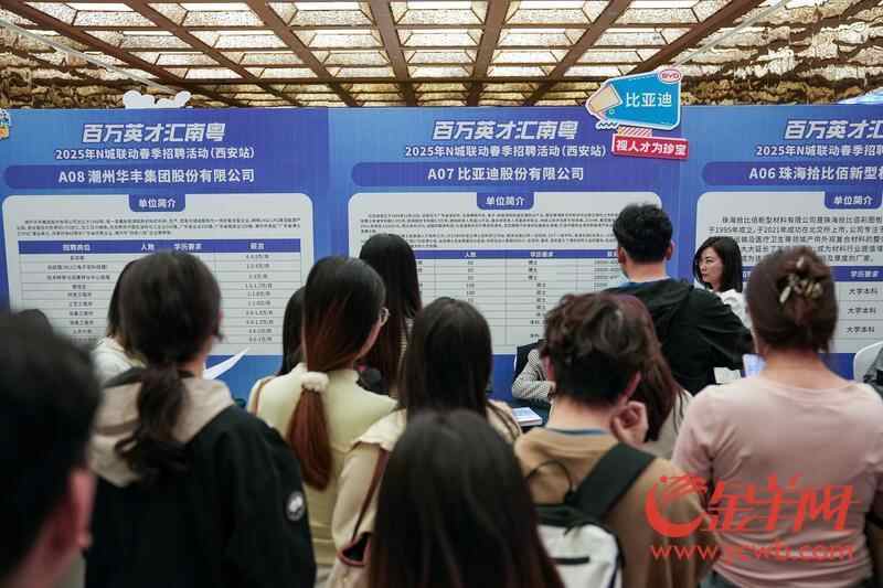 4月23日,“百万英才汇南粤”2025年N城联动春季招聘活动(西安站)在西安曲江国际会议中心举行。本次活动上,来自广东的200多家企事业单位释放超2.5万个岗位,助力大学生就业。