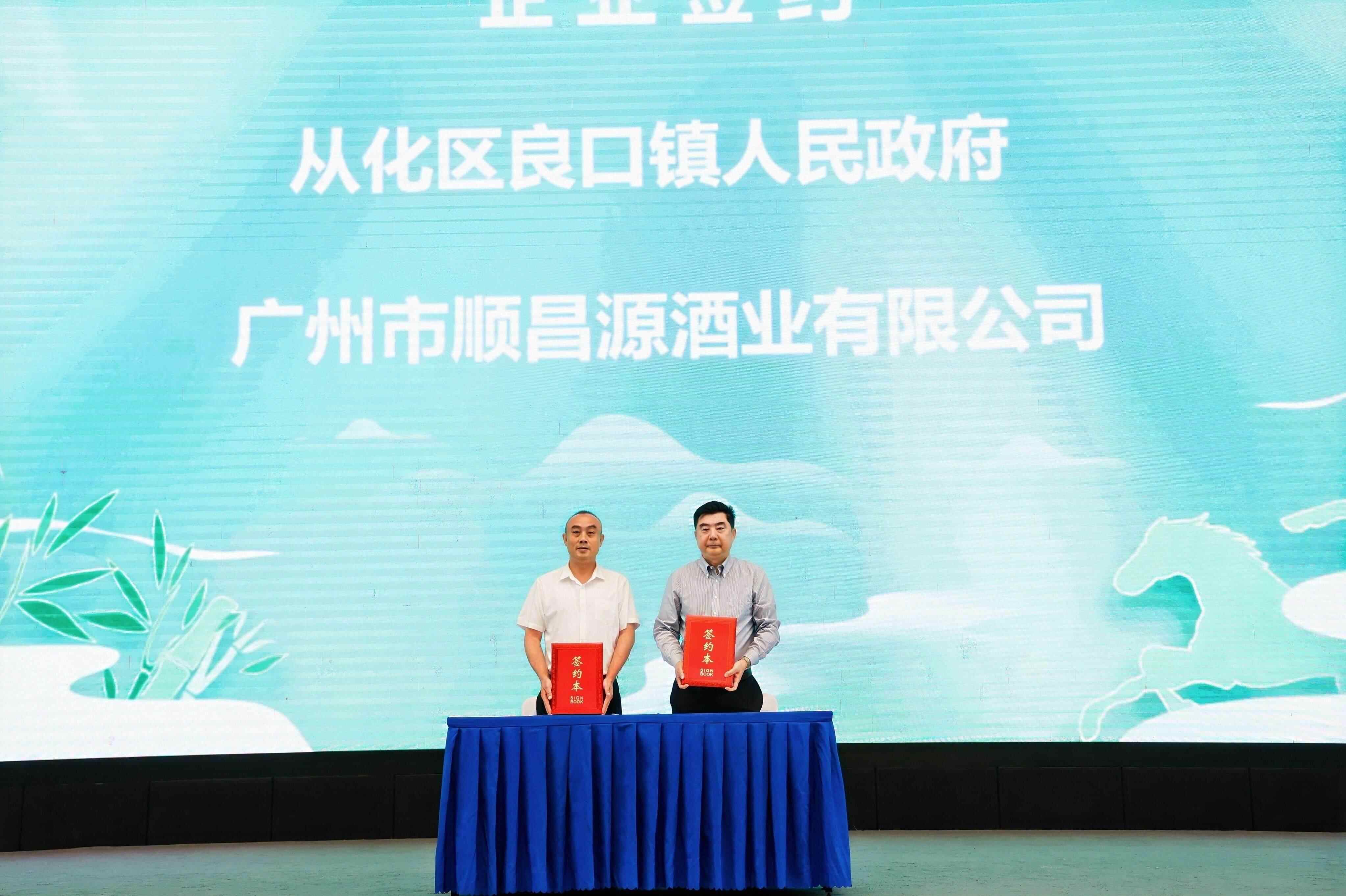 活动现场还举行了企业签约环节。广州市顺昌源酒业有限公司与良口镇政府签订战略合作协议,每年采购不低于200万斤青梅,充分发挥龙头企业的联农带农作用,为果农提供稳定的市场销售渠道,推动良口镇优质农产品“走出去”。