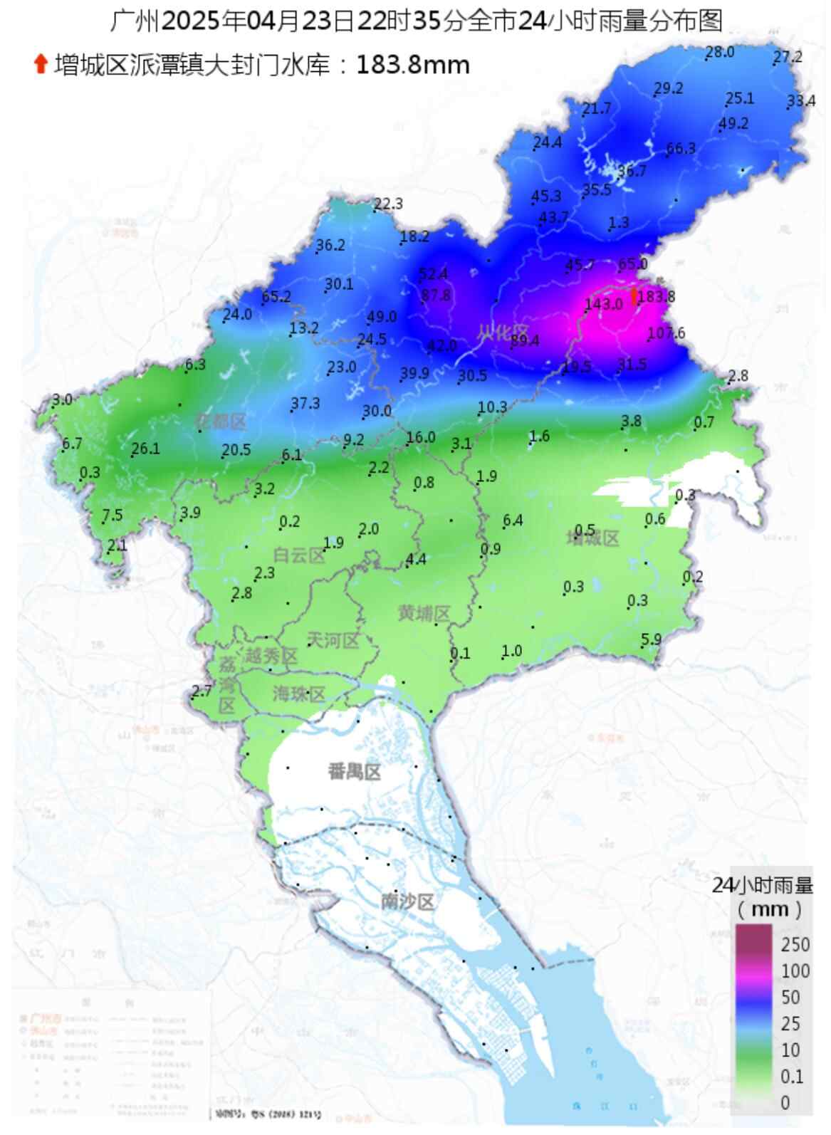 根据广州市气象部门对广州天气的实况统计,截至23日22时35分,广州在过去24小时出现降水不均现象,降水主要集中在北部的从化区及增城北部区域。南部的番禺、南沙,有的地方过去24小时并未记录到降水。