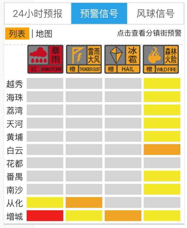 截至23日22时50分,广州北部仍然维持高等级的“风雨预警”信号。除增城外,从化区维持发布暴雨黄色、雷雨大风橙色预警。