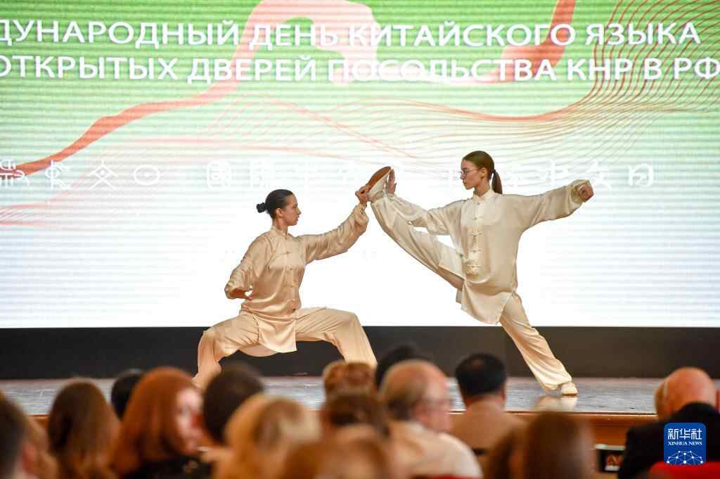 4月20日,学生在俄罗斯首都莫斯科举行的“国际中文日”活动上表演武术节目。