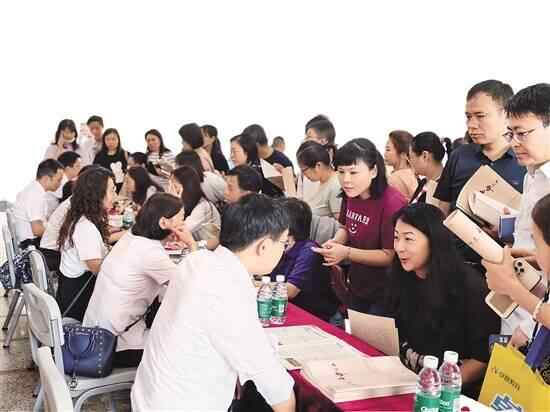 两列高中招生咨询摊位前,人头攒动,家长想要获得和学校老师一对一咨询的机会,要靠等和“挤”。一位母亲带初三就读的儿子前来咨询,她告诉记者,本部校区和桂花校区自己都考虑填报,“不知道桂花校区第一年招生录取分数线大概怎样、住宿环境怎么样,想咨询下学校老师,但人太多,都挤不进去。”
